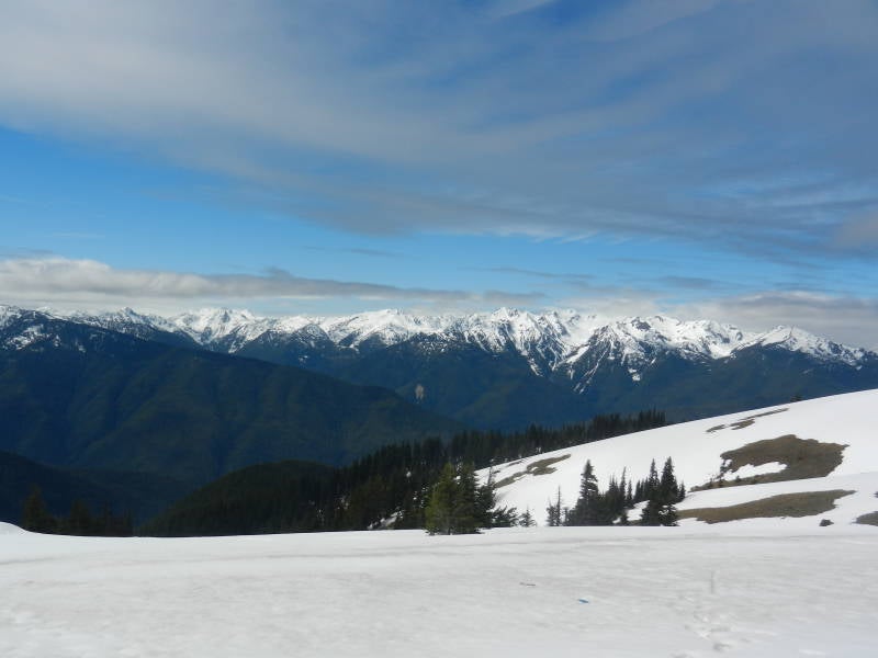 Rond 08.00 uur uitgecheckt en richting het visitors center van Olympic National Park gereden. Ik wilde graag weten of Hurricane Ridge geopend was, want op de website die ik de laatste dagen heb bijgehouden, kwam steeds naar voren dat de weg nog dicht was. Het zonnetje schijnt inmiddels heerlijk en na een fijn ritje bereik ik het visitors center. Een aardige mevrouw vertelde dat Hurricane Ridge Road geopend was. De trails waren door de sneeuw nog niet toegankelijk, maar je kon wel wandelen over Hurricane Hill Road. Dat deel van de weg is nog gesloten voor auto’s waardoor je er veilig kunt wandelen. Ze zei ook dat er veel herten langs de weg stonden, dus ik ben benieuwd. Ik koop hier nog snel een boekenlegger en een magneetje en dan kan de rit naar boven beginnen. De rit naar boven is echt schitterend mooi. Onderweg 1 hert gezien langs de weg die lekker aan het grazen was. Eenmaal boven aangekomen (hier staat weer een visitors center) heb je een schitterend uitzicht over de Olympic Mountains. Er ligt nog heel veel sneeuw maar de parkeerplaats en de wegen zijn heel goed schoongemaakt. Echt koud is het niet en er schijnt een lekker zonnetje. Al wandelend loop ik Hurricane Hill Road op. Ik liep continue naar beneden, maar… dit moet je natuurlijk straks ook weer naar boven lopen… slik! Onderweg passeerde een ranger die zei dat een klein deel van de trail open was. Maar ongeveer halverwege de weg besloot ik toch om te keren. Ik moest immers die berg ook nog oplopen en ik was al dik een half uur aan het afdalen. Onderweg nog mooie foto’s gemaakt en uiteraard ook in de sneeuw gestaan. De uitzichten over Juan de Fuca en Canada waren schitterend. De weg was erg zwaar en ik moest een paar keer stoppen om op adem te komen. Maar I made it! In het visitors center nog even wezen plassen en het winkeltje bezocht. Ze hebben erg leuke spullen maar het is echt knetterduur. Uiteindelijk alleen een mooie ansichtkaart gekocht voor in mijn dagboekje. Hierna weer terug naar de auto gelopen en weer afgedaald.